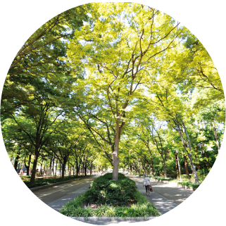 靭公園まで徒歩2分以内で行くことができるため、都会の中でも自然を満喫しながらお散歩をすることができます。